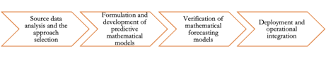 The key stages of the methodology proposed in this work include: analyzing the available input data; selecting, constructing, and validating mathematical models; and implementing these models into operational use (Fig. 1).