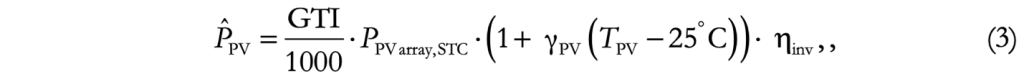 where TNOCT is the nominal operating temperature of a PV cell at GTINOCT = 800 W/m2; Tamb = 20°C.